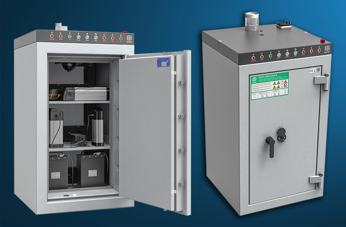 Feuerwiderstandsfähiger Lagerschrank zur Lagerung und Ladung von Lithium-Ionen-Batterien und -Akkus